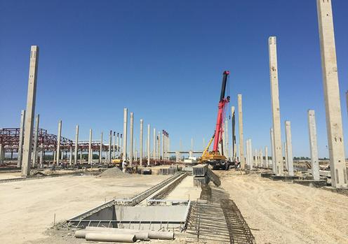 Проверенный «Узавтосаноатом» при строительстве предыдущих заводов «Трест-12» приступил к работам, возводя с нуля из преимущественно отечественных стройматериалов здание будущего предприятия. Впрочем, на кадрах той самой записи, сделанной в ноябре 2017 года во время посещения площадки президентом, видно, что домик, построенный для выступления Мирзиёева, — единственное на тот момент сооружение посреди чистого поля в 45 га. Но, конечно, за отведенный главой государства год с небольшим возвести необходимую инфраструктуру вполне реально.