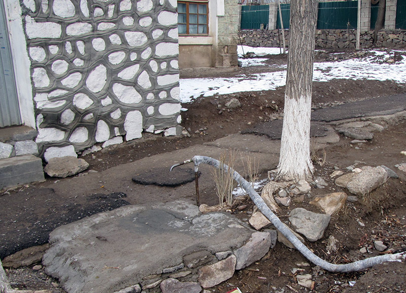 — Питьевая вода подается всего на один час в сутки. Она берется из двух источников: Дреш-сай и Карамазар-сай. В них пробурены 5 скважин, глубина которых достигает 100 метров. Здесь были установлены два насоса, которые должны подавать воду в бассейн. Однако в связи с долгой эксплуатацией двигатели насосов вышли из строя. С 2014 года вода в поселок подается насосами ГОК «Адрасман». Для бесперебойного обеспечения поселка водой муниципальное жилищно-коммунальное хозяйство должно иметь три насоса мощностью 600 кубометров: один работает, второй находится в резерве, а третий — на ремонте. Был составлен проект по улучшению водоснабжения населения, который мы отправили нескольким инвесторам. Однако обнадеживающих откликов пока нет.