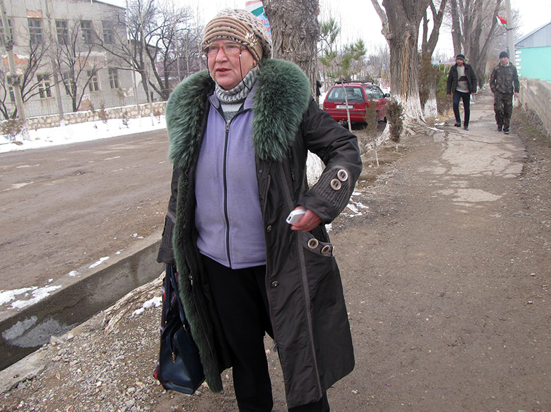 По пути в поселковый джамоат (орган местного самоуправления) случайно знакомлюсь с пенсионеркой, 63-летней Людмилой Васильевной. Она около 40 лет проработала поваром в дошкольных учреждениях поселка, сейчас пенсия у нее 600 сомони ($63,6). Муж ее тоже пенсионер, но его пенсия — всего 300 сомони. Однако Людмила Васильевна не ропщет на судьбу, наоборот, выглядит довольной. Одна ее дочка уехала в Россию, другая живет под боком у матери, в Адрасмане. С соседями женщине повезло — они добрые и приветливые, так что печалиться, по мнению Людмилы Васильевны, ей не о чем.
