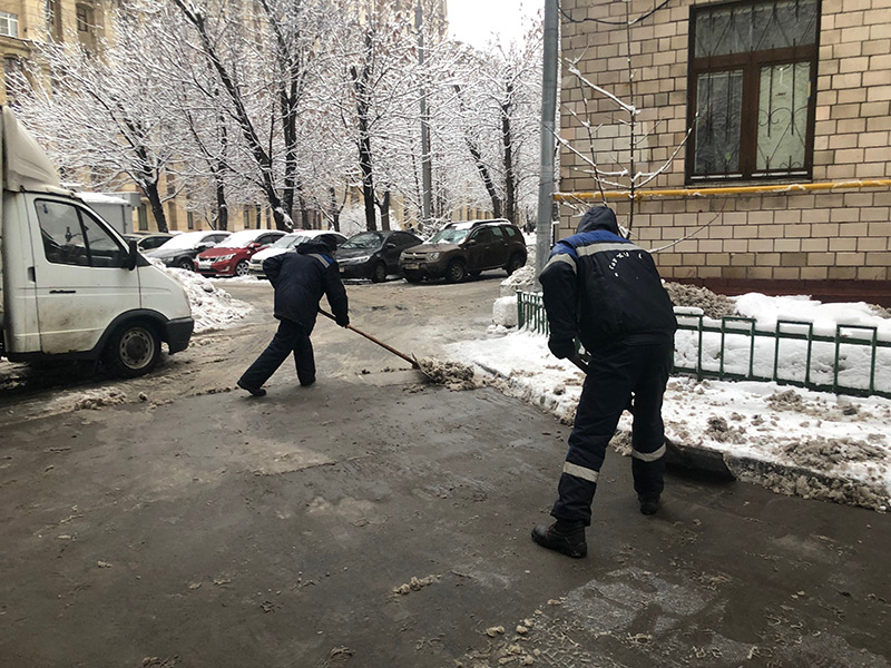 Согласно договору рабочий день дворника длится с восьми утра до пяти вечера — с часовым перерывом на обед. В реальности рабочий день у них начинается затемно, в 5-6 утра, потому что снег надо убрать, пока его не притоптали и он не превратился в наст. Заканчивают они также позже положенного. Например, во время снегопадов дворников постоянно перекидывают с участка на участок, потому что город должен быть чистым. В результате получается, что большинство дворников в Москве работают без выходных и на четыре-пять часов больше положенного.