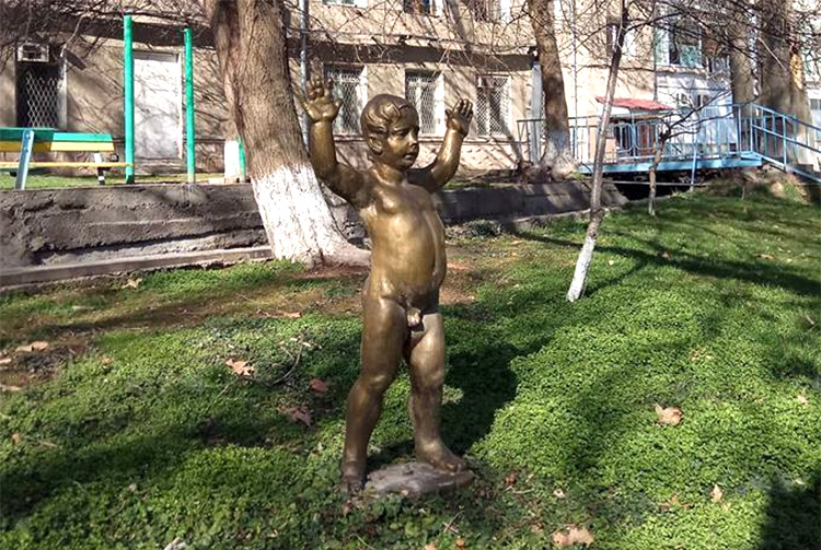 Недавно в Facebook было опубликовано фото одинокой скульптуры голого мальчика, стоявшей в обычном ташкентском дворе. Еще одна такая же, по словам автора фотографии, находилась чуть дальше и потому в кадр не попала.