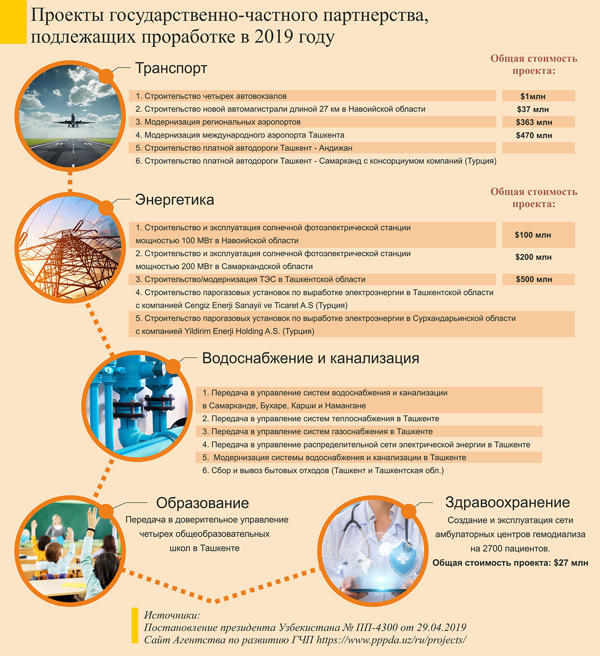 Проекты государственно-частного партнерства, подлежащие проработке в 2019 году (нажмите, чтобы увеличить). Инфографика "Ферганы"
