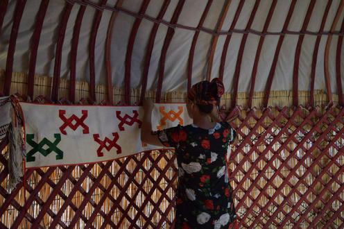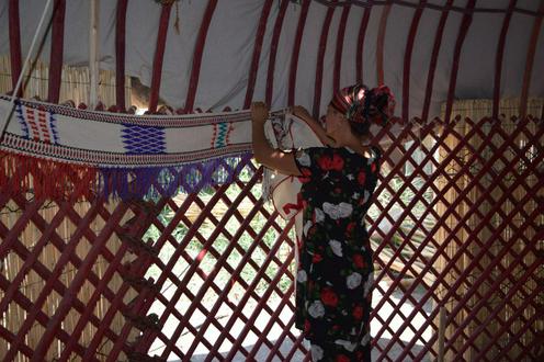 Пока мужчины занимаются деревом, женщины ткут украшения для юрты на станке, собранном по старинным чертежам.