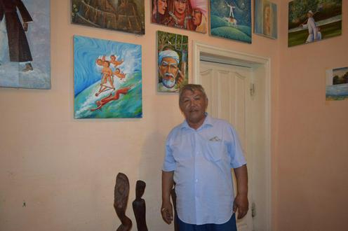 Два талантливых человека — отец и сын — легко уживаются на одной площадке, но у каждого из них есть своя территория, своя, если хотите, тайная комната. В одной рождается из дерева смелая Гулаим — легендарная воительница из каракалпакстанского эпоса «Кырк кыз» («Сорок девушек»), в другой — создается портрет невесты или хайкель — нагрудное украшение из серебра и кораллов. Такие когда-то носили прабабушки современных каракалпачек, но их с удовольствием надевают и нынешние красавицы.