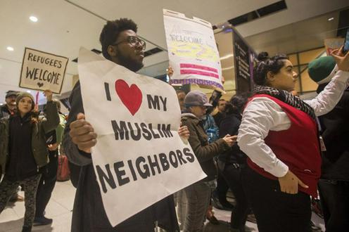 Акция протеста против иммиграционной политики Трампа в одном из аэропортов США. Фото с сайта Npr.org