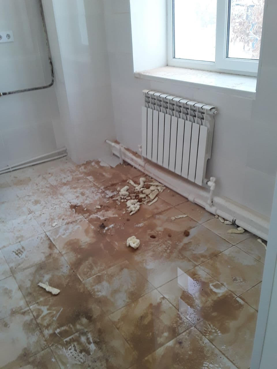 Сам ремонт некачественно сделали, но нам все равно сказали: «Переезжайте». Я говорю, давайте сначала сходим, посмотрим, мы пошли, посмотрели – там стены уже начали «отходить», трубы висят, чуть горячую воду запускают, с них течет, ржавчина. Раньше была канализация, теперь там открытые трубы, откуда все течет на землю, запах ужасный с утра. Я в ролике показала рабочий проект, который мне дали строители, занимавшиеся реконструкцией. Они мне сами сказали: «Что подвозили, тем мы и работали», и посоветовали показать этот проект прокуратуре, потому что он не соответствует тому, что получилось. В нем, например, указаны медные проволоки, а у нас они алюминиевые. Я в этом не разбираюсь, но строители сказали, что такого у них еще не было.