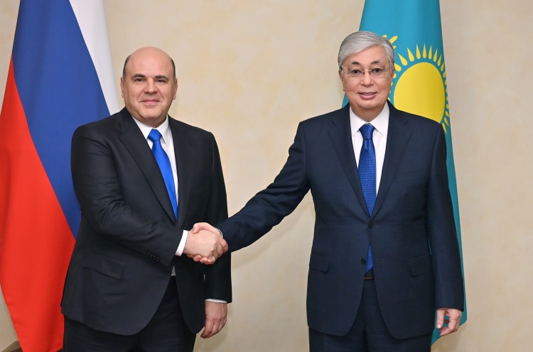 Касым-Жомарт Токаев принял премьер-министра России Михаила Мишустина, 25 февраля 2022 года. Фото с сайта akorda.kz