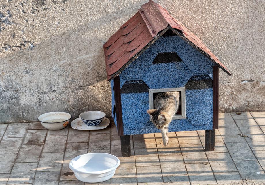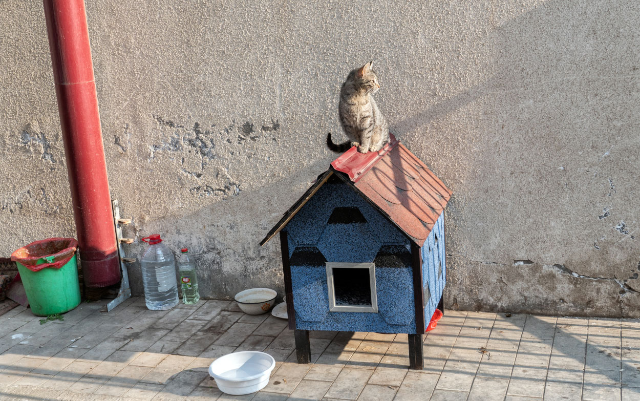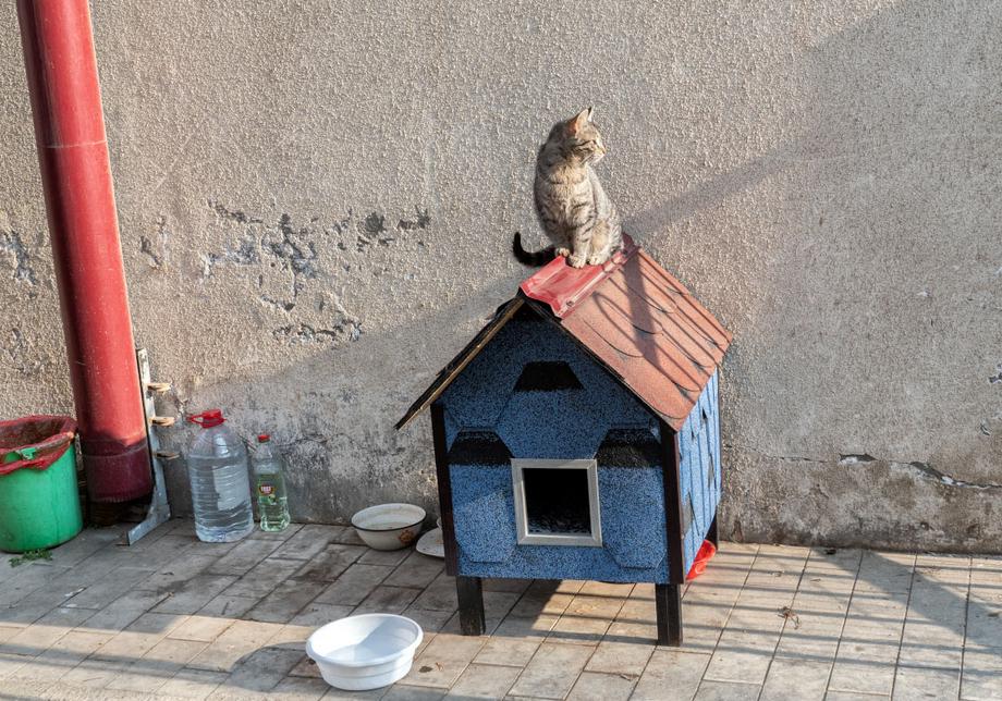 Речь идет об установке на улицах города, особенно в жилых массивах, компактных домиков для уличных кошек.