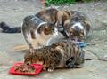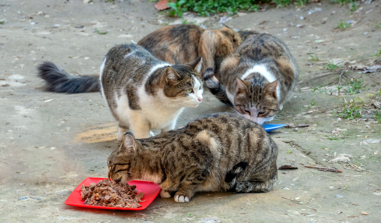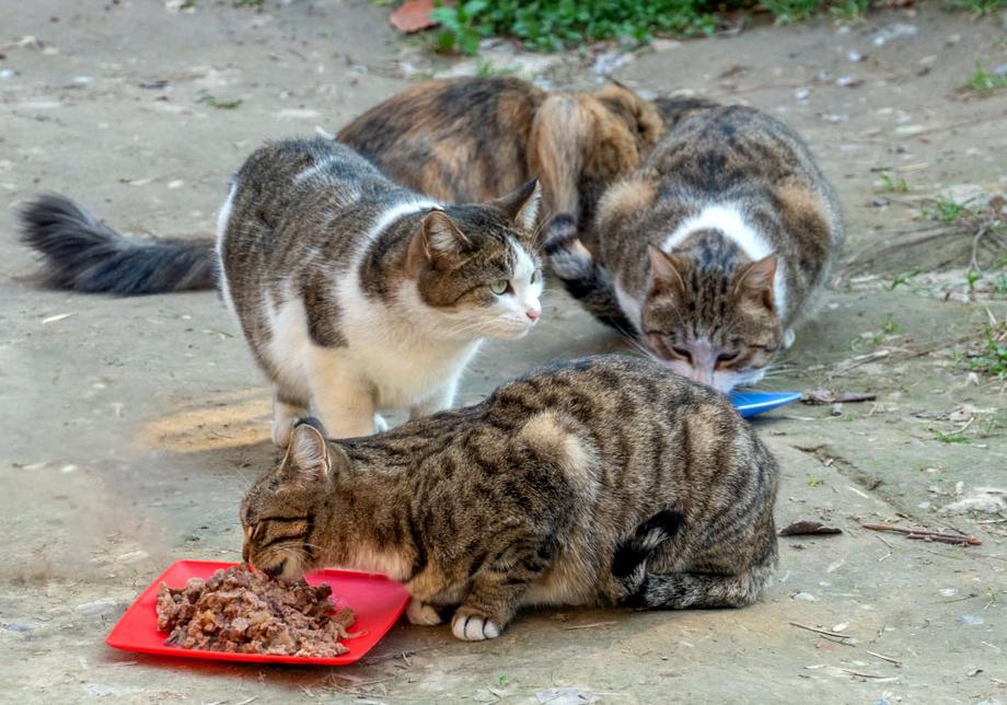 Для подкормки обычно используются куриные головы и потроха, поскольку уличные кошки привередничают по отношению к сухим кормам — сначала с голоду набрасываются и на них, но со временем начинают предпочитать сырое мясо. Остатки несъеденной подкормки в жарком климате необходимо убирать немедленно, чтобы не разводить антисанитарию, вонь, полчища мух и ос.