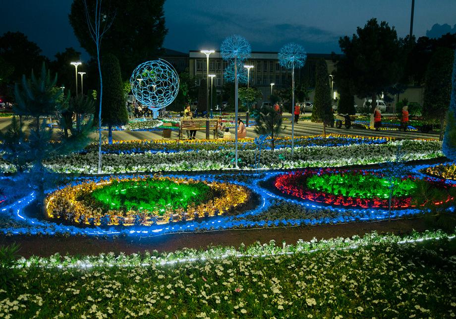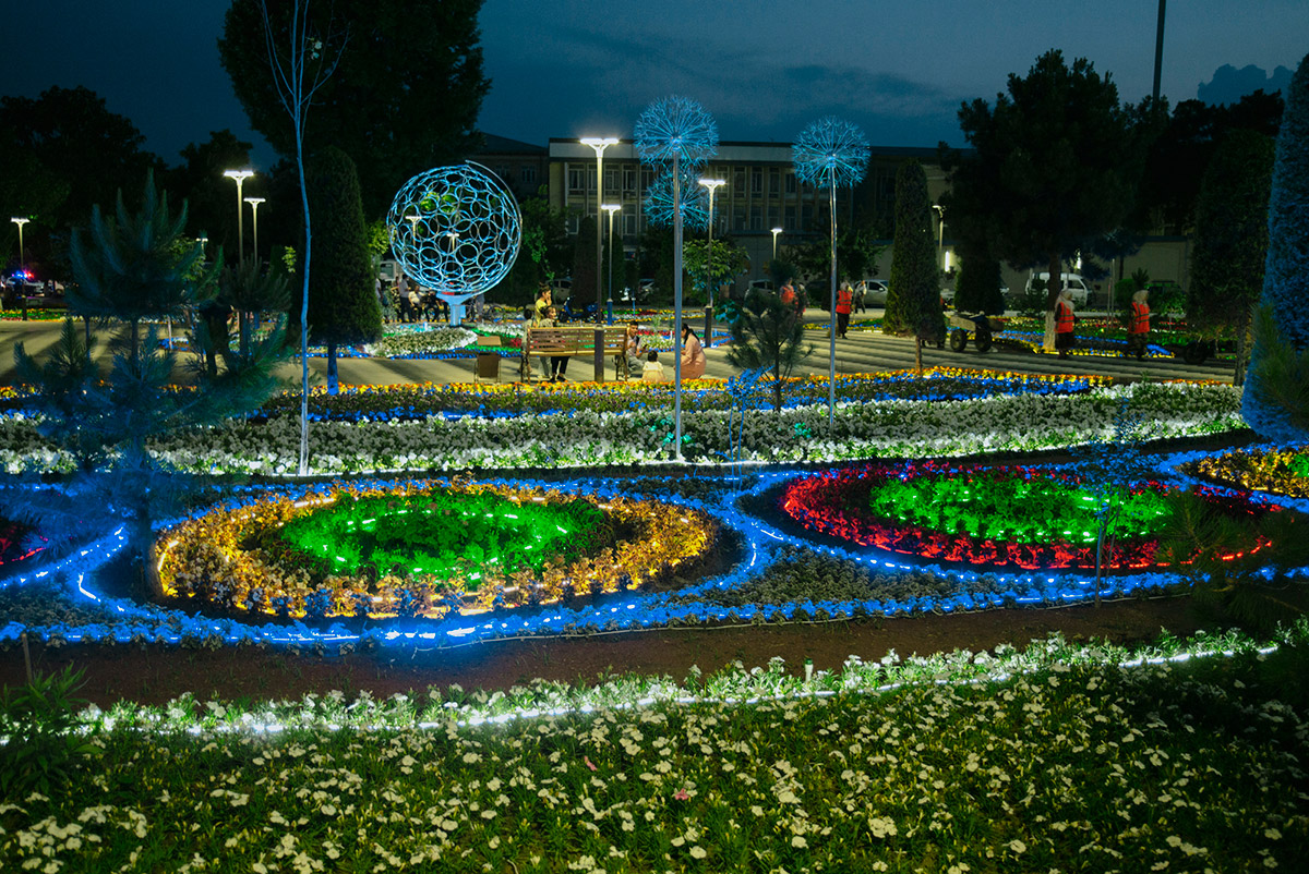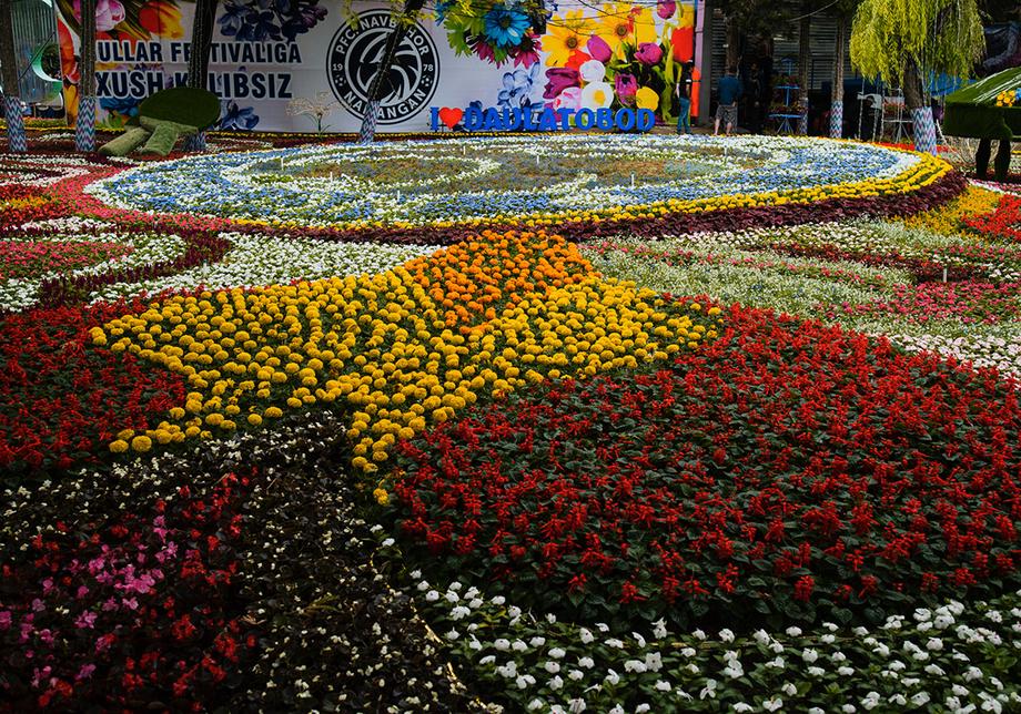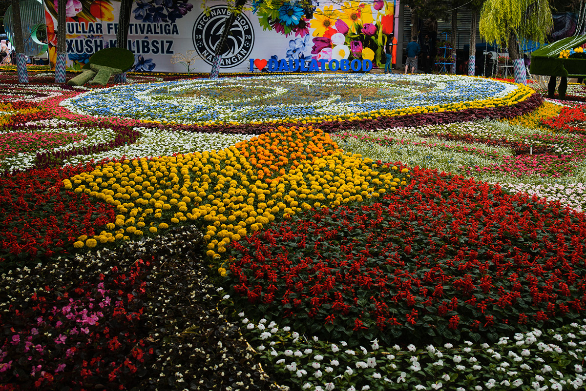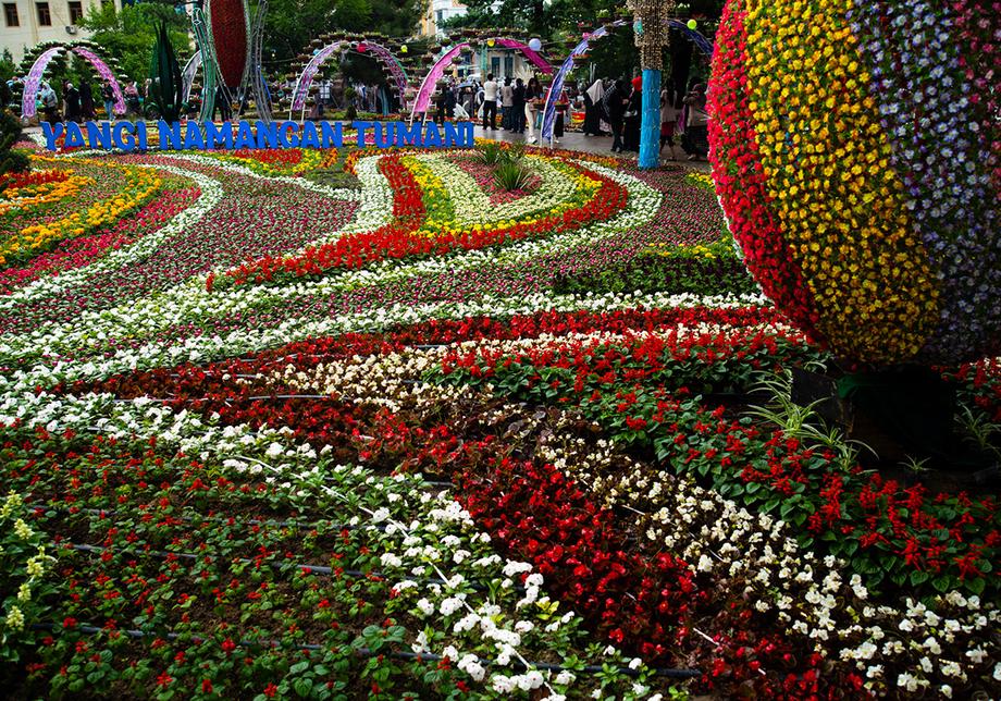 В Намангане все говорит о празднике цветов, городские улицы украшены клумбами, газонами, инсталляциями, баннерами. Повсюду цветущие растения, причем живые, а не искусственные.
