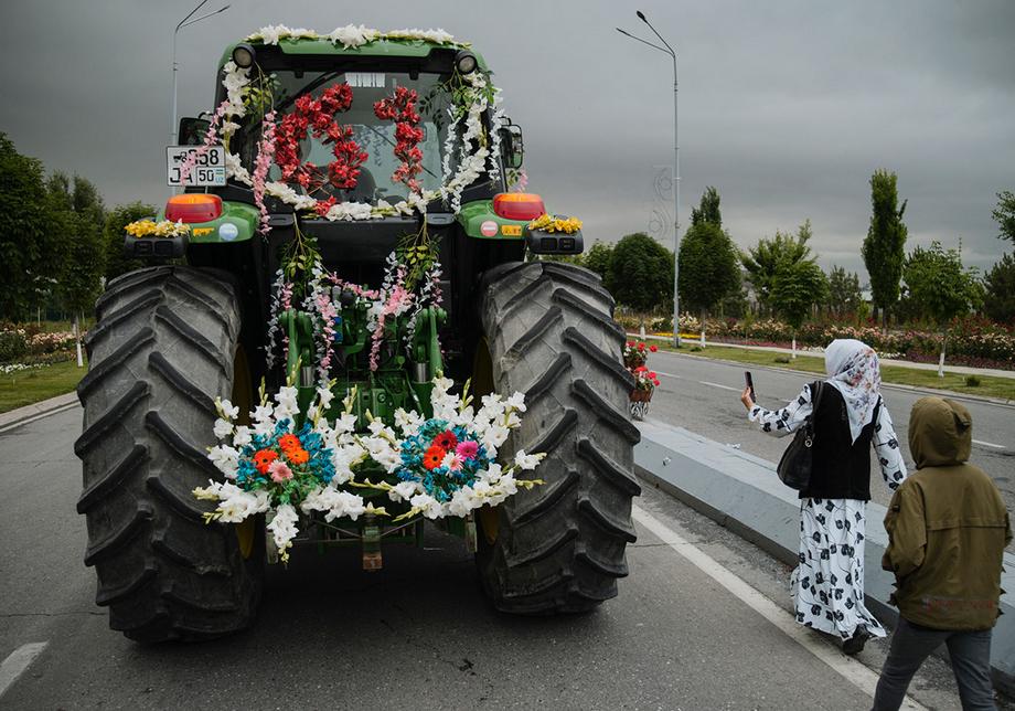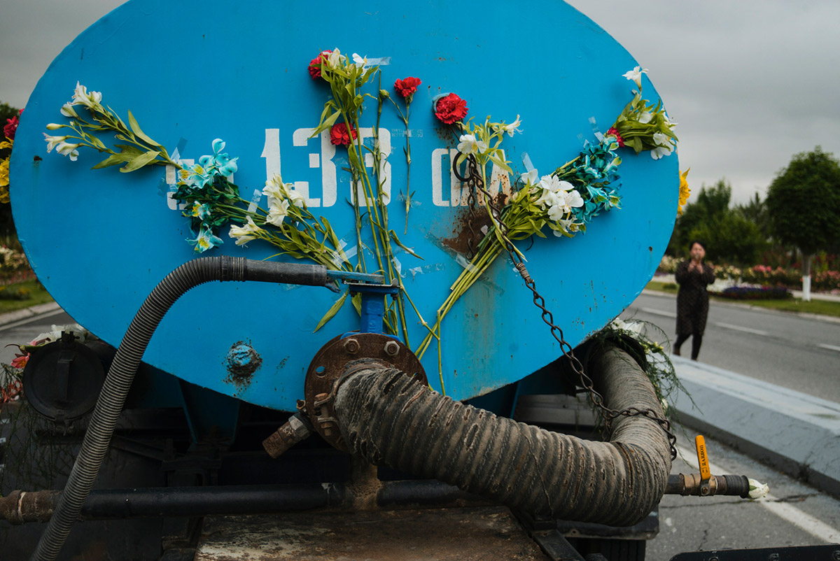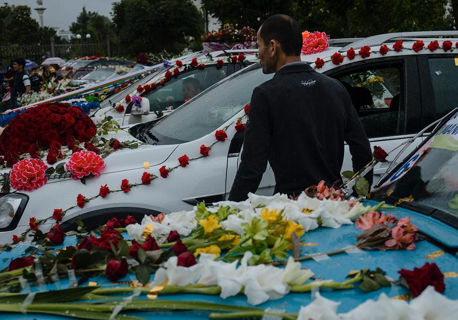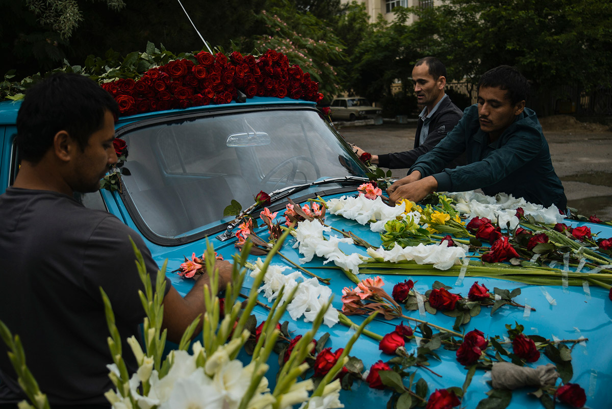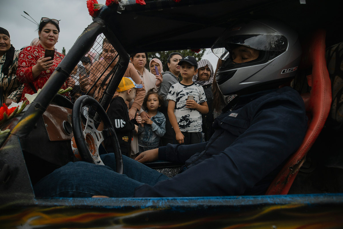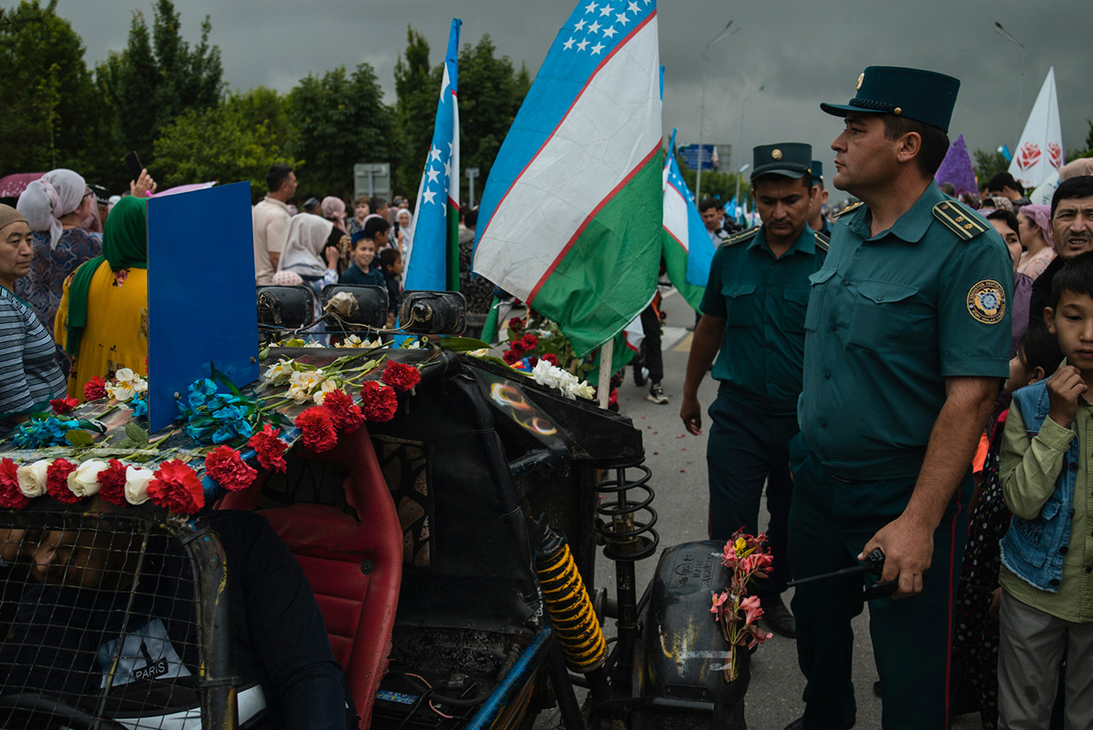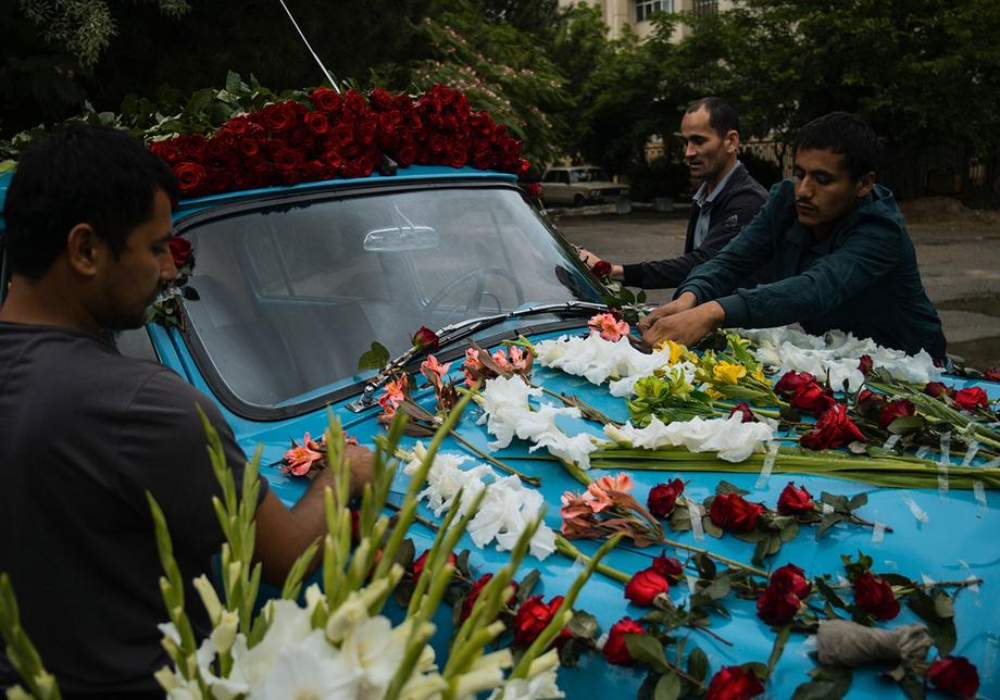 Вместе с ребятами мы добрались до точки сбора на подъезде к международному аэропорту «Наманган»: 200 украшенных автомобилей разного возраста и платформ разной степени креативности, а также разного соотношения живых и искусственных цветов в оформлении (все это легче показать на фотографии, чем описать словами).