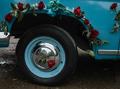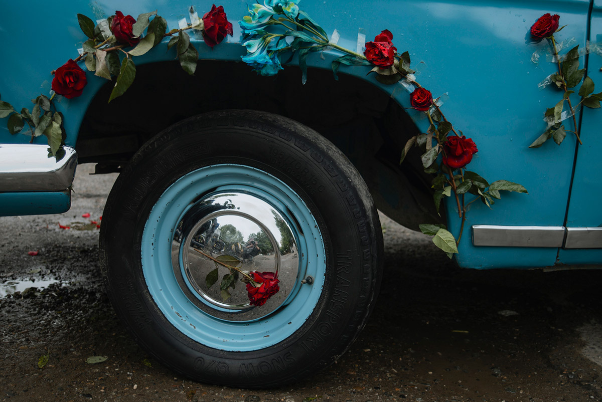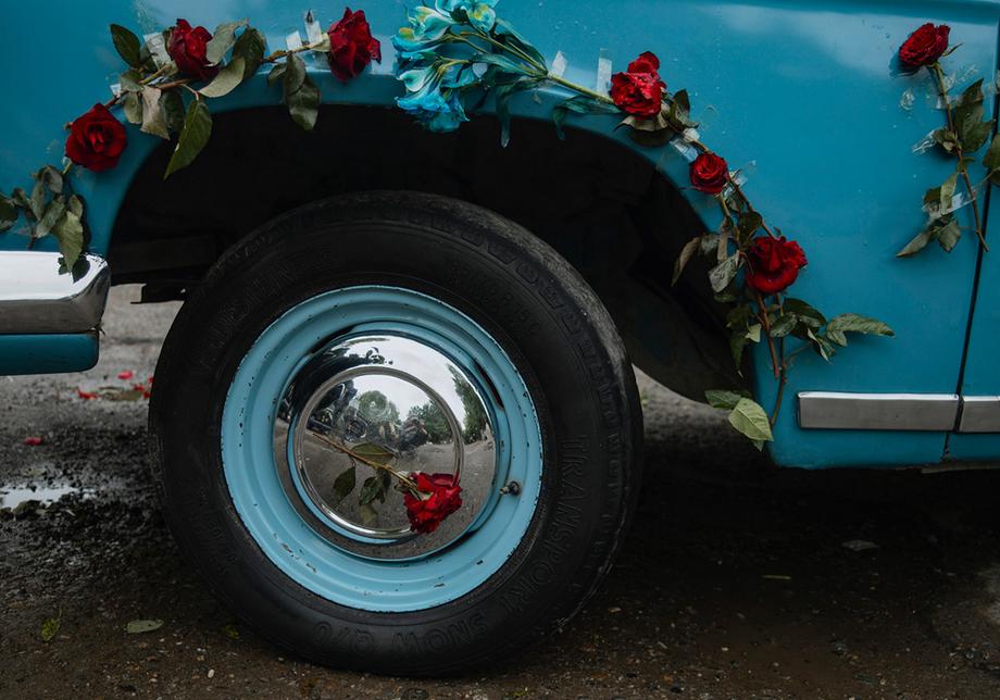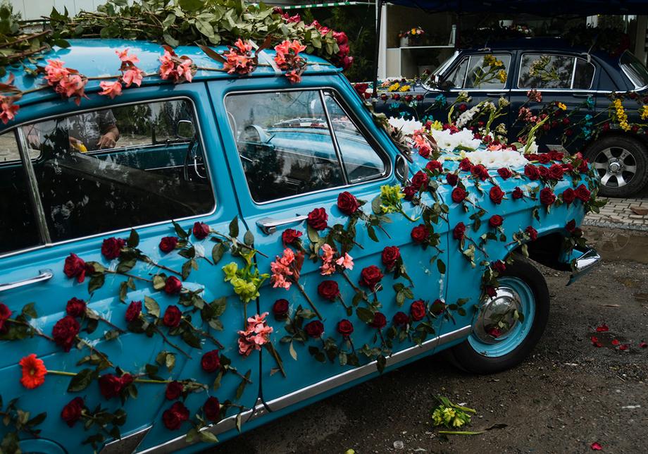 Нам очень повезло — прямо у нашей гостиницы группа молодых людей завершала цветочное оформление своих ретроавтомобилей.