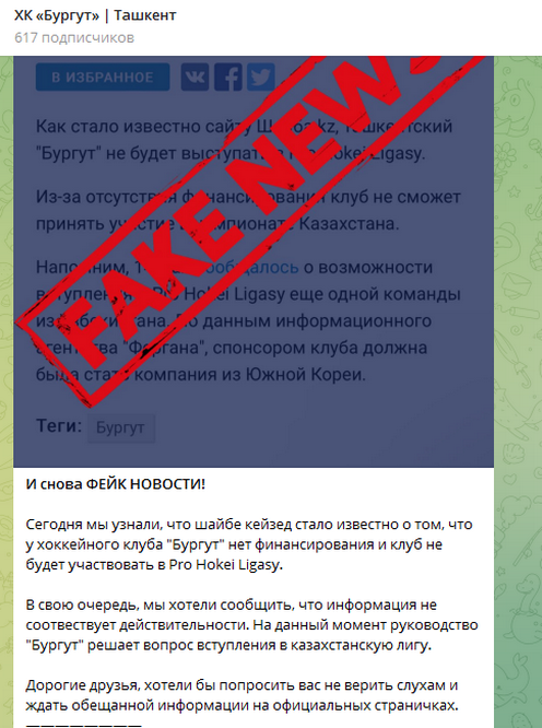 На следующий день, 25 июня, авторитетные казахстанские СМИ сообщили, что никакого «Бургута» в Казахской хоккейной лиге не будет. Пресс-служба проекта пыталась отбиваться в соцсетях, заявляя, что это фейк, и призвала поклонников, определенная база которых сформировалась, не верить слухам. Тем не менее спустя несколько часов канал «Головой об лед» донес до общественности инсайдерскую информацию о том, что хоккеистам и тренерам, которые давали согласие играть за «Бургут», позволено «в случае поступления более выгодного предложения от других команд принимать его и не ждать, чем разрешится ситуация в Ташкенте». Чем многие хоккеисты и решили воспользоваться.
