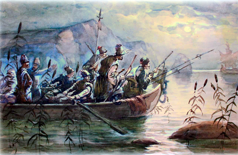 По словам Левшина, казаки поднялись в лодках вверх по Уралу,