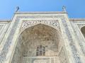 Мавзолей Мумтаз Махал окружен четырьмя сорокаметровыми минаретами, которые слегка отклонены наружу, чтобы в случае сильного землетрясения не упасть на здание. Но собственно мечеть — из красного песчаника, характерного для североиндийской архитектуры, — стоит в стороне. Ее уравновешивает здание-близнец гостевого дома, которое называется «Джаваб» (ответ).