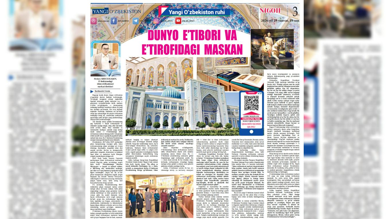 Директор Центра исламской цивилизации (ЦИЦ) Узбекистана Фирдавс Абдухаликов подготовил аналитическую статью для газеты «Yangi Oʻzbekiston». Об этом сообщает пресс-служба Центра.