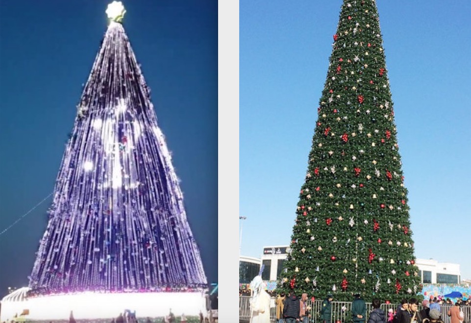 Самые высокие новогодние елки Центральной Азии: ашхабадская (слева) и ташкентская (справа). Фото с сайта News.tj