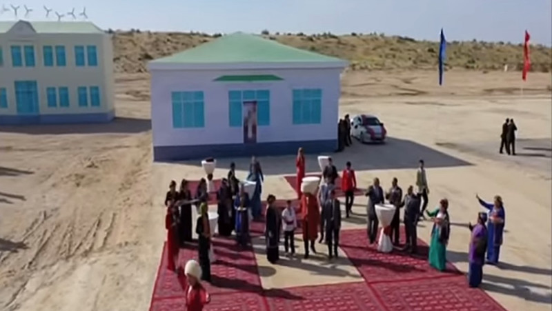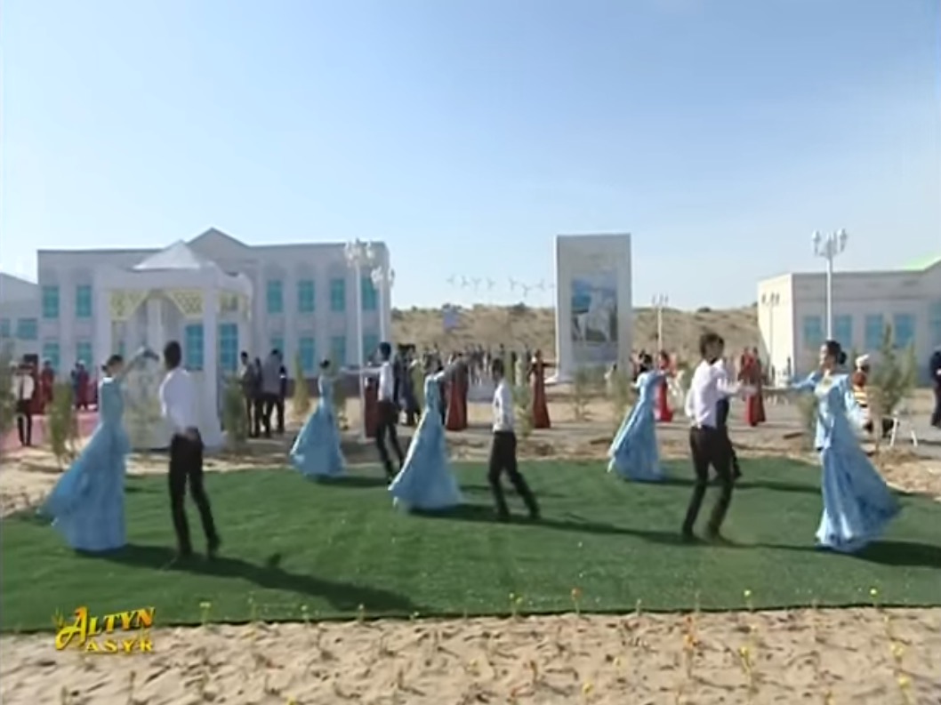 Президент Туркменистана Гурбангулы Бердымухамедов 8 мая заложил новое село на берегу искусственного озера Алтын асыр в пустыне Каракумы. Репортаж с этого мероприятия, прошедшего на фоне картонных муляжей, изображающих здания, которые здесь будут сооружены, опубликовало агентство TDH и показал телеканал Altyn Asyr.