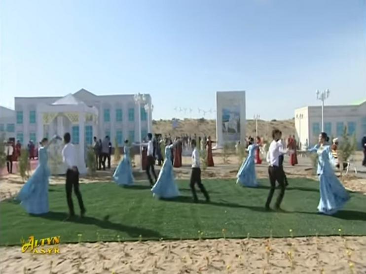 Для гостей здесь устроили представление артисты из Государственного драматического театра Балканского велаята и танцевальный коллектив «Гульджан» из этрапа Берекет, а также хореографический ансамбль «Багтыярлык» Специальной школы искусств Балканского велаята и творческий коллектив из этрапа Махтумкули.