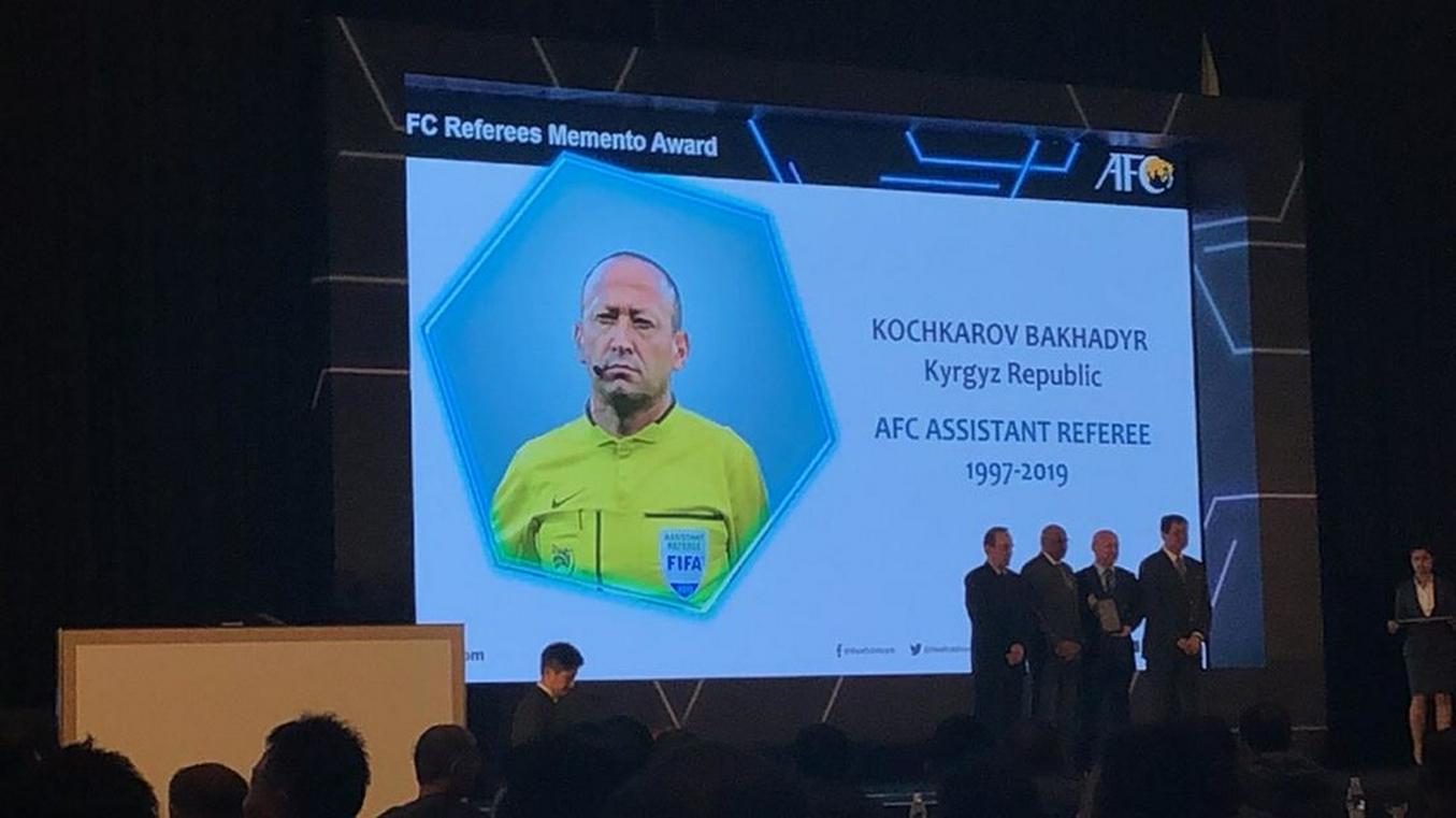 Арбитр ФИФА из Кыргызстана Бахадыр Кочкаров завершил международную карьеру. Об этом сообщает официальный сайт Федерации футбола Киргизии. О завершении карьеры Кочкаровым стало известно в ходе церемонии проводов заслуженных судей AFC Referees Memento Awards 2020, которая состоялась в малайзийском Куала-Лумпуре 26 ноября.