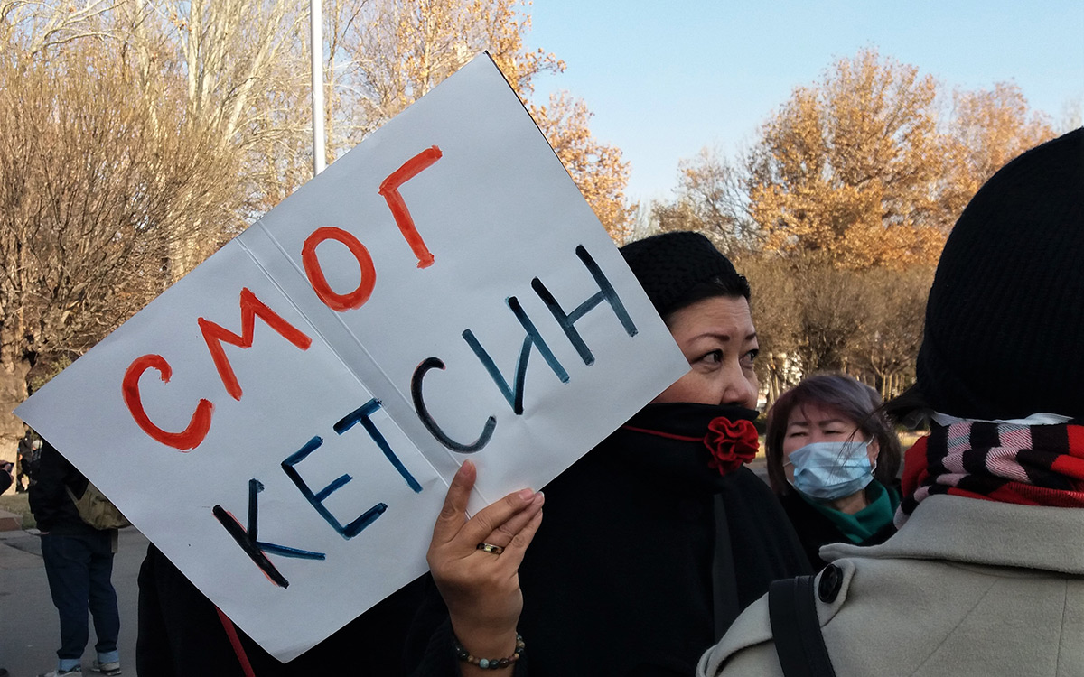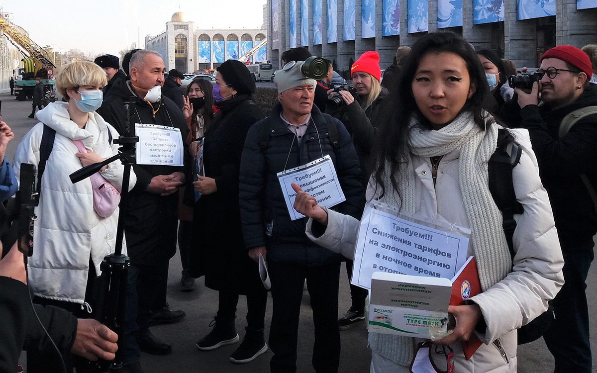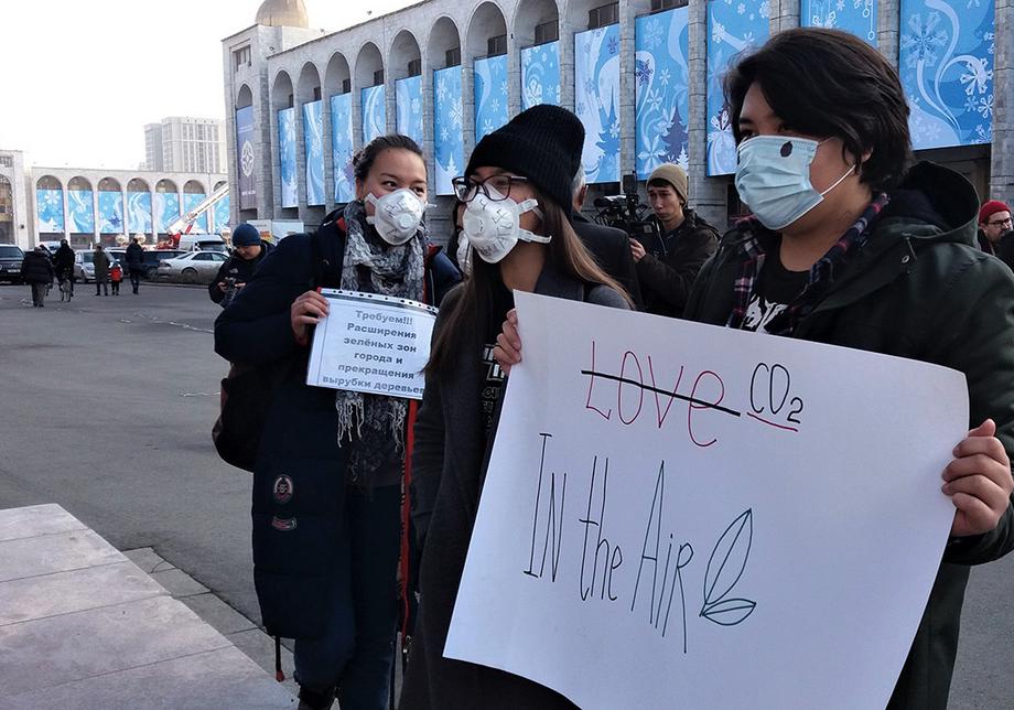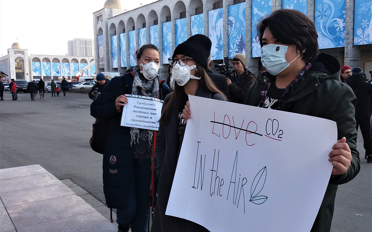 В Бишкеке прошел митинг против смога, сообщает 12 декабря корреспондент «Ферганы».