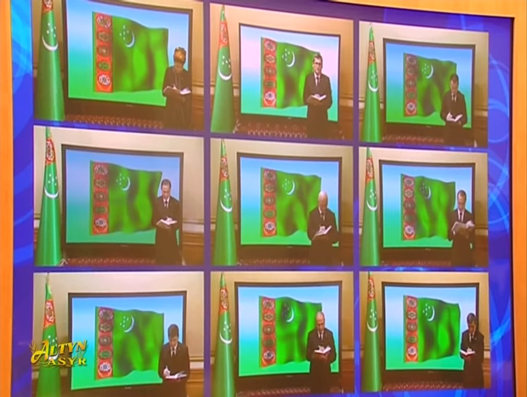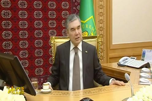 Телеканал Altyn Asyr сделал об этом совещании почти получасовой материал, показав, как Бердымухамедов в кресле заслушивает доклады, а подчиненные по видеосвязи на фоне компьютерной графики, изображающей развевающийся флаг Туркмении, стоя, конспектируют его распоряжения в блокноты.