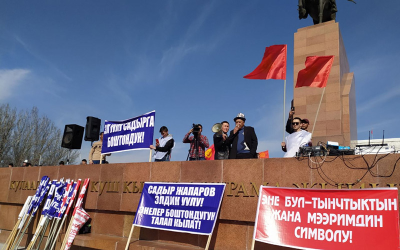 Митинг, состоявшийся 2 марта на центральной площади Ала-Тоо, был изначально организован в поддержку приговоренного к 10 годам колонии экс-депутата Садыра Жапарова. Но сам Жапаров перед акцией через адвоката попросил своих сторонников не ходить на митинг. В итоге, помимо освобождения Жапарова, митингующие выдвинули множество требований — недопущение распространения коронавируса COVID-19, урегулирование границы с Таджикистаном, погашение госдолга перед Китаем.