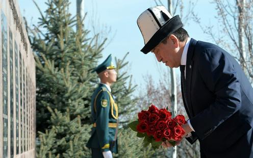Сначала Жээнбеков возложил цветы к мемориалу героев апрельской революции в Национальном историко-мемориальном комплексе «Ата-Бейит». Затем глава государства осмотрел музей «Таазим», в котором хранятся оцифрованные фото- и видеоматериалы об апрельских событиях. Президент оставил запись в книге посетителей.