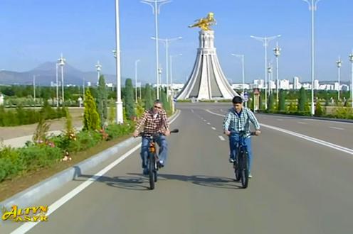После заезда на велосипедах последовала конная прогулка. Президент Бердымухамедов оседлал скакуна Тойлы, а Керим — коня Шаполат. Этой прогулке телеканал Altyn Asyr посвятил 11-минутный сюжет (с 33 по 44 мин).