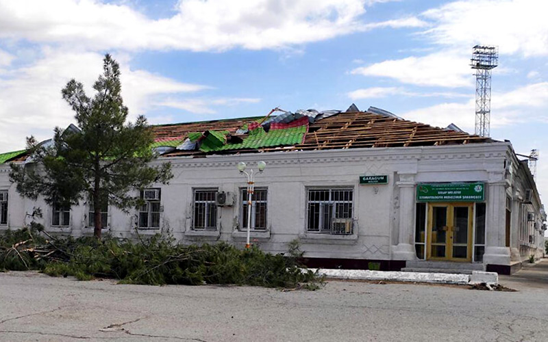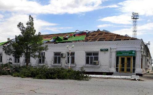 Поврежденное ураганом здание в Лебапском велаяте. Фото с сайта Turkmen.news