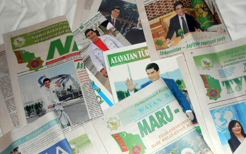 Основными государственными СМИ Туркменистана являются Госинформагентство Туркменистана и газета «Нейтральный Туркменистан». Их повестка посвящена работе и отдыху Бердымухамедова, и даже в не связанных с ним материалах он обязательно упоминается. Например, автор очерка о поездке на пляж, опубликованного «Нейтральным Туркменистаном» 23 июня, пишет, что «наш глубокоуважаемый Президент открыл новую зону отдыха на берегу нашего озера», и что благоустройство пляжа — это «плоды дальновидной, прогрессивной политики глубокоуважаемого Президента, направленной на мирную, счастливую, благополучную жизнь туркменистанцев и дальнейшее процветание нашей независимой, постоянно нейтральной Родины».