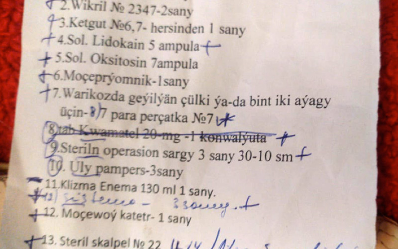 Международный центр перинатологии и гинекологии «Эне Мяхри» в Ашхабаде, который считается одним из лучших медицинских учреждений Туркменистана, стал требовать от пациенток приносить с собой лекарства, перевязочный материал, медицинские перчатки и даже хирургические скальпели для проведения кесарева сечения. Об этом пишет TurkmenNews.