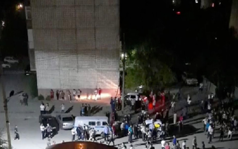 В ночь на пятницу, 24 июля, в Сатпаеве сотни людей собрались возле подъезда дома, где обнаружили похищенного ребёнка. Фото с сайта Ratel.kz