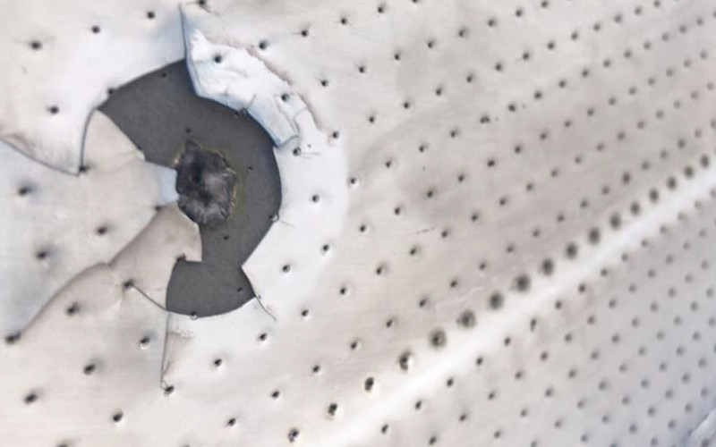 В нижней, средней и центральной части фюзеляжа специалисты нашли восемь точек повреждений разного диаметра — от 2 мм до 6 мм, толщиной от 1 мм до 2,5 мм — в виде прожженных участков в местах расположения заклепок.