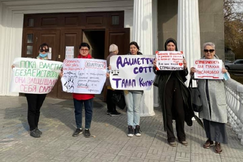 Участницы акции в поддержку Гулжан Пасановой. фото Facebook Bishkek Feminist Initiatives
