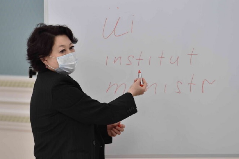 Актоты Раимкулова представляет новый вариант алфавита. Фото akorda.kz