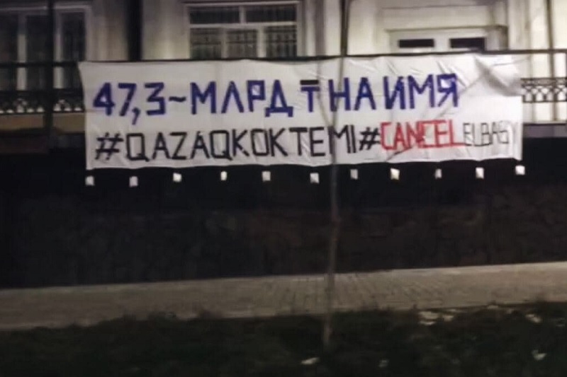 В Алматы 1 декабря на проспекте Назарбаева (бывш. Фурманова) активисты растянули баннер с надписью «47,3 млрд~ ₸ на имя», передает The Village.kz.