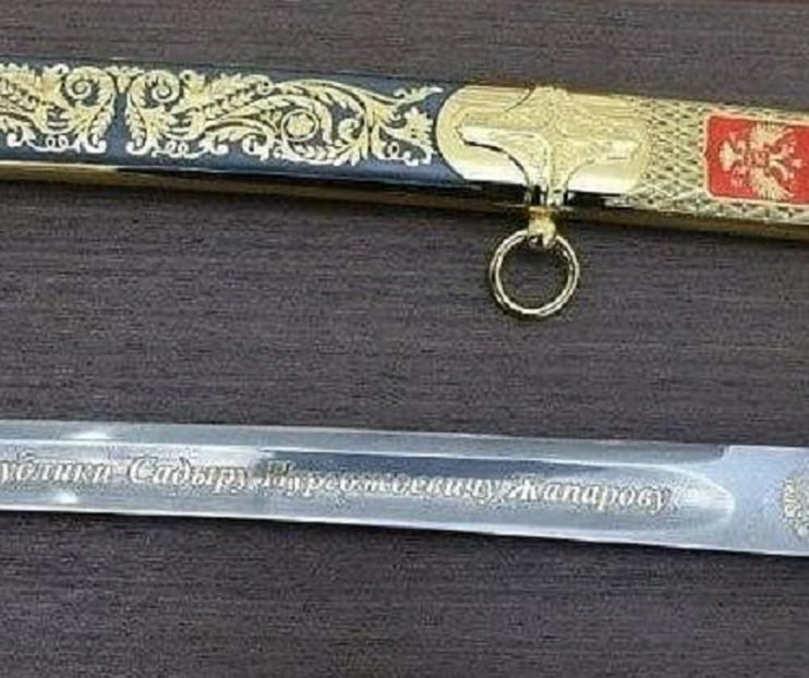 Президент Кыргызстана Садыр Жапаров во время недавней встречи получил в подарок от российского лидера Владимира Путина саблю. Об этом Sputnik Кыргызстан сообщили собственные источники.