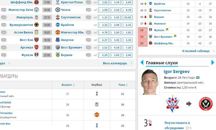 Между тем, слух о переходе Сергеева в чемпионат Англии является главной трансферной темой на сайте, а фотография форварда сборной Узбекистана находится на лицевой странице списка клубов Премьер-лиги русскоязычной версии Transfermarkt.