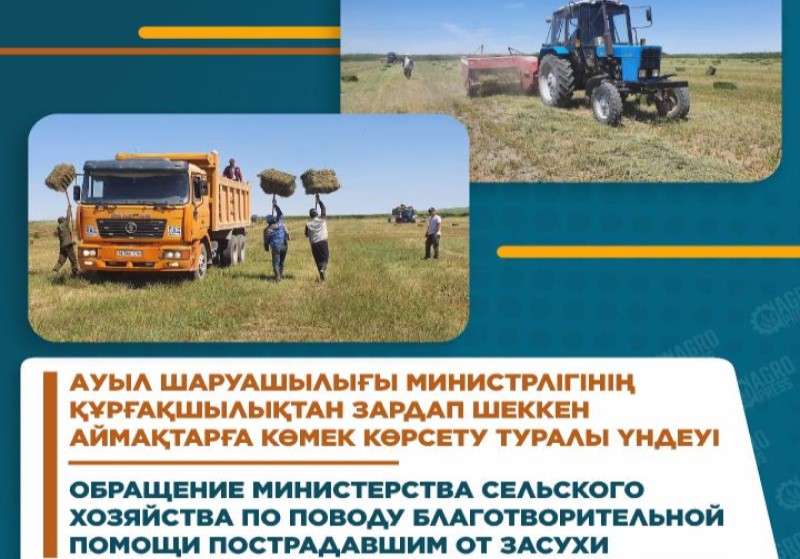 Министерство сельского хозяйства Казахстана обратилось к жителям с призывом помочь согражданам, пострадавшим от засухи. Соответствующее обращение размещено на сайте ведомства.