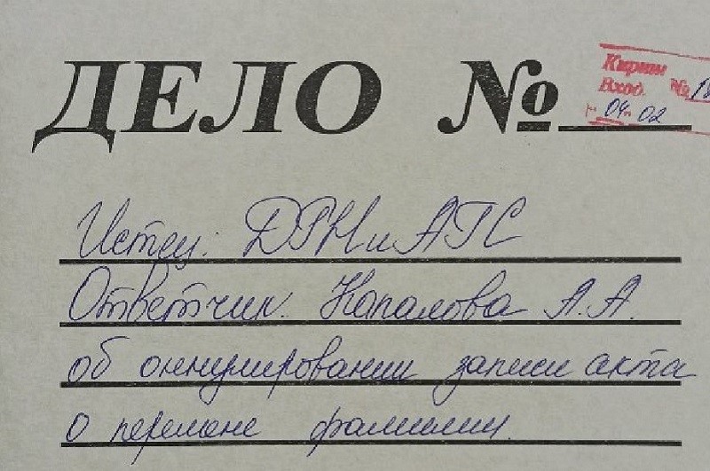 В Департаменте утверждали, что Капалова нарушила закон «Об актах гражданского состояния», где указано, что перемена отчества осуществляется по именам отца, усыновителя, отчима, дедушки по линии отца и матери.