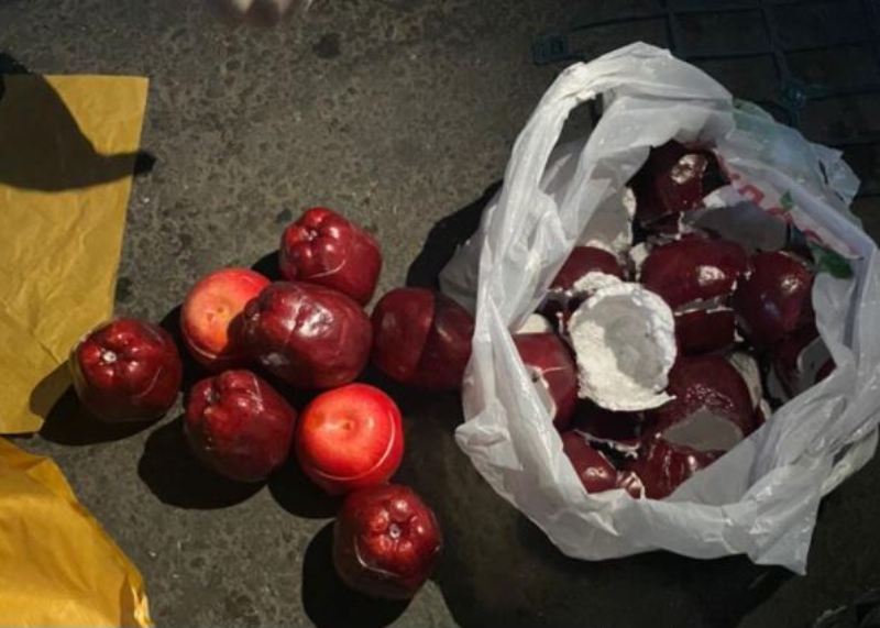 Среди находившихся в полуприцепе фруктов были изъяты 147 муляжей яблок, изготовленных из пенопласта, внутри которых находились полиэтиленовые пакеты с кристаллообразным веществом белого цвета. При исследовании выяснилось, что это метамфетамин общим весом 10,1 кг, из которого можно получить 150 тыс. доз наркотика. Стоимость изъятой партии наркотического средства на черном рынке составляет $531,3 тыс.