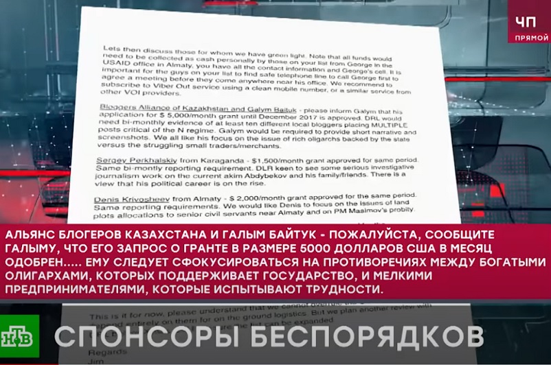 3 февраля российский телеканал НТВ в программе ЧП сообщил, что «спонсором беспорядков» в Казахстане стал британский финансит и инвестор Уильям Браудер, на которого якобы работали блогеры Денис Кривошеев, Галым Байтук и политолог Толганай Умбеталиева. В выпуске, в частности, утверждалось, что Браудер платил им за посты с критикой казахстанских властей, и назывались конкретные суммы.