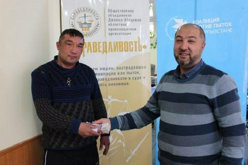 Правозащитники передали пострадавшему от пыток в изоляторе Джалал-Абада кыргызстанцу Улану Назаралиеву 50 тыс. сомов ($590) — такую компенсацию ему присудило государство, сообщает местная правозащитная организация «Справедливость».
