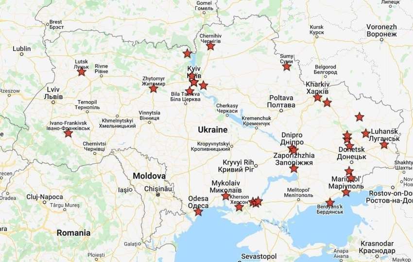Карта объектов военной инфраструктуры ВС Украины, подвергшихся ударам со стороны РФ. Фото из соцсетей
