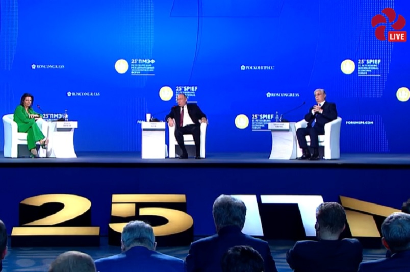 Тему признания ДНР и ЛНР Токаев затронул, отвечая на вопрос модератора дискуссии Маргариты Симоньян о его отношении к российской специальной военной операции на территории Украины.