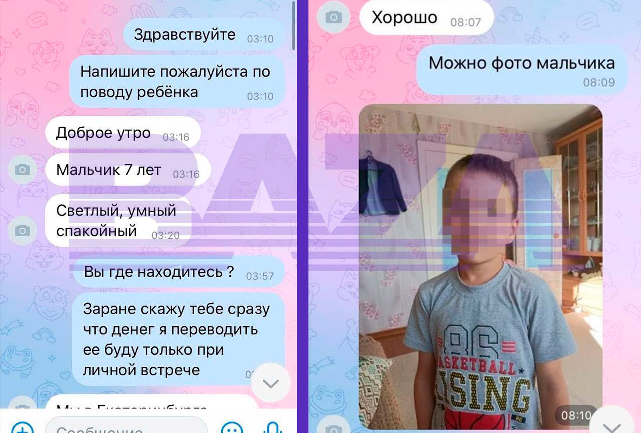 Объявление Наргизы о продаже ребенка обнаружила в соцсетях (как уточняет «База», в паблике «ВКонтакте» о пересадке почек) одна из подписчиц аккаунта «Альтернативы» в Instagram (соцсеть запрещена в РФ; принадлежат корпорации Meta, которая признана в РФ экстремистской). Волонтеры вступили с Наргизой в переписку. Женщина рассказала, что мальчик, которого хочет продать, — ее сын от первого брака, есть еще двое детей от второго брака. Второй муж был против ее старшего сына и они решили его продать, чтобы рассчитаться со своими долгами. Мальчика оценили в 300 тысяч рублей.