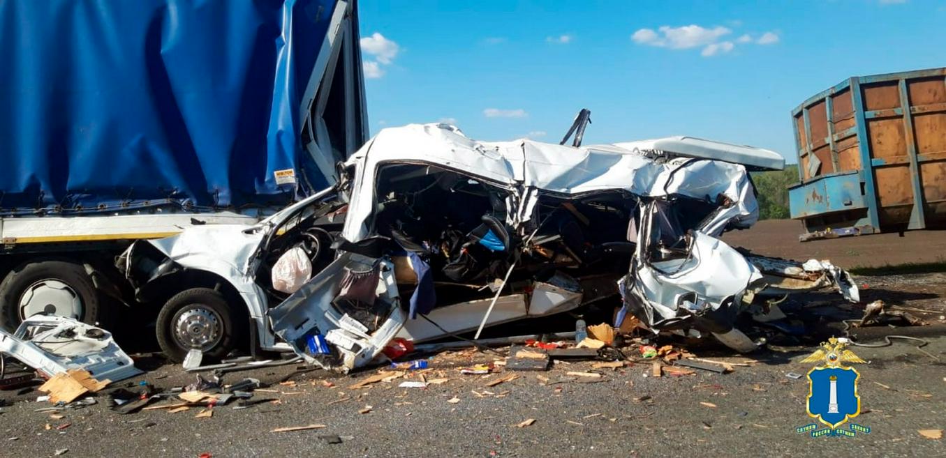 «По предварительным данным, водитель большегруза не затормозил заблаговременно и совершил наезд на стоящий микроавтобус, ожидавший своей очереди в реверсном движении на ремонтируемом участке дороги. Микроавтобус оказался зажатым между двумя грузовыми автомобилями», — рассказали в УМВД.