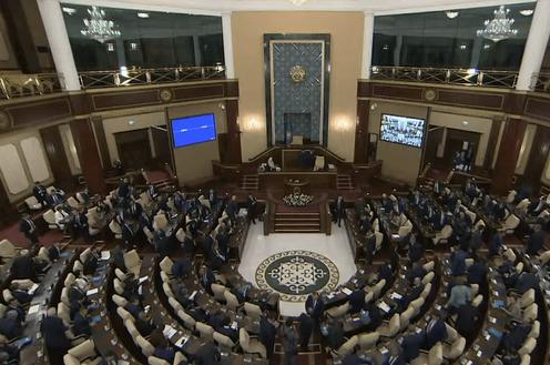Проект закона «О внесении изменений и дополнения в Конституцию Республики Казахстан» был рассмотрен на совместном заседании палат парламента в первом и втором чтениях и одобрен депутатами единогласно.