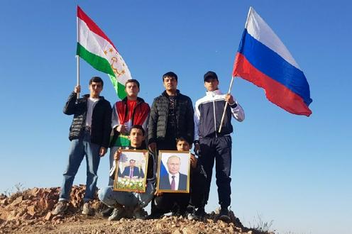 На восхождение дети взяли с собой портреты Рахмона и Путина, а также флаги России и Таджикистана, которые водрузили в верхней точке гор Могол Тау — Пике Музбек (1624 метра над уровнем моря).